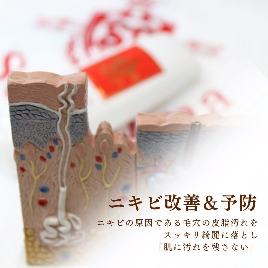 ・独自成分が毛穴の皮脂汚れを効果的に取り除き、肌荒れやニキビを防ぎます。お肌を清潔に保つことで、繰り返すトラブルから守り、つややかで健康的な肌へと導きます。